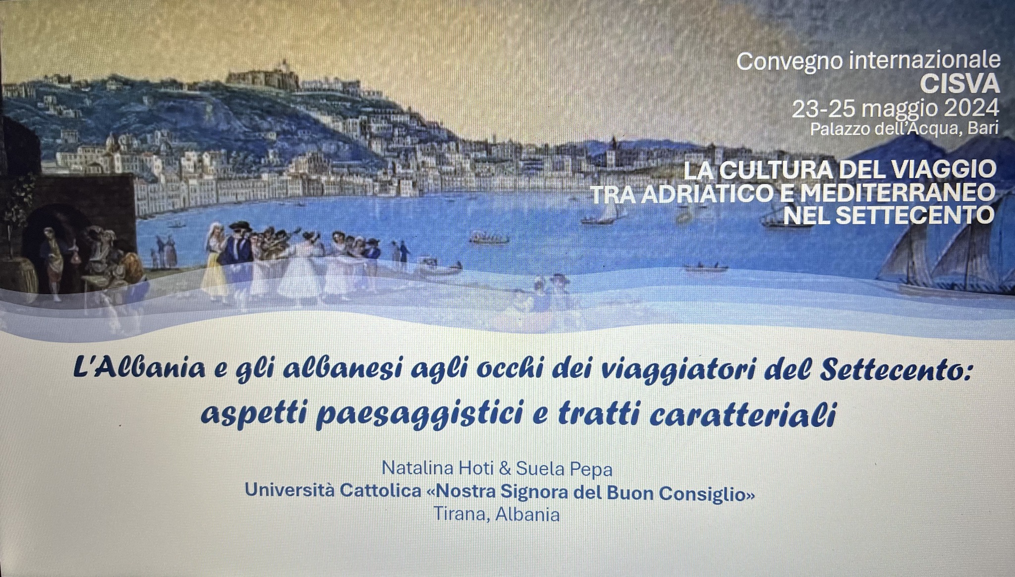 Il contributo dal titolo “Mediterranean Ethnography and Customs: Similarities and Differences between Albanian, Greek and Turkish Communities in the Eyes of Chandler in the XVIII Century”, presentato al Convegno internazionale CISVA La cultura del viaggio tra Adriatico e Mediterraneo nel Settecento (23–24 maggio 2024), da Marime Gjoka, analizza la rappresentazione etnografica delle comunità albanesi, greche e turche nelle testimonianze di viaggio settecentesche. Lo studio mette in luce somiglianze e differenze nei costumi e nelle pratiche sociali, evidenziando il ruolo dello sguardo del viaggiatore nella costruzione delle immagini dell’alterità nel contesto mediterraneo.